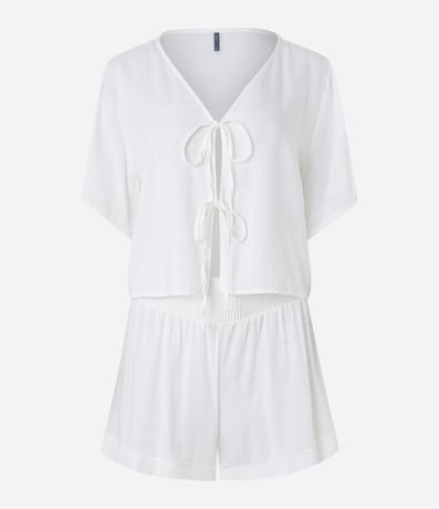 Ref: Conjunto de pijama short doll em viscose, com blusa gola V, amarração na frontal e mangas curtas, já o short possui cós elástico, ambos sem estampa.