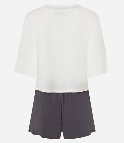 Ref: Conjunto de pijama curto com duas peças confeccionadas em viscose certificada. Camiseta com gola redonda, manga curta e estampa romântica dos Smurfs; e short liso com cintura elástica.