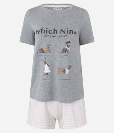Conjunto de pijama composto por duas peças: camiseta com mangas curtas e estampa de cachorros salsicha; e short de viscose com cintura elástica e estampa xadrez vichy! E aí, "qual Nina você é hoje"? :D