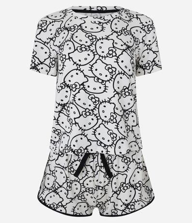 Ref: Conjunto de pijama curto confeccionado com viscose certificada. As peças têm estampa bicolor de carinhas da Hello Kitty!