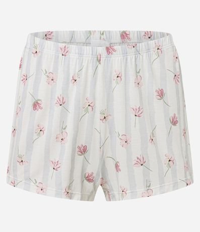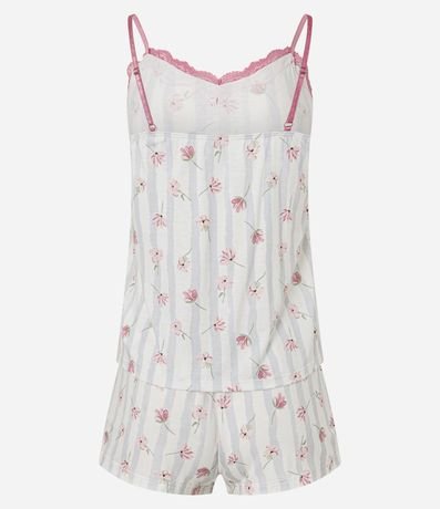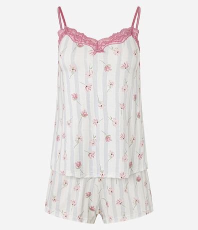 Pijama Short Doll em Viscose com Estampa Listrada e Floral