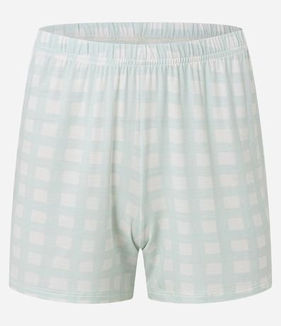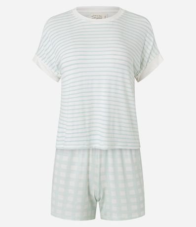 Pijama Short Doll em Viscose com Estampa Listrada e Xadrez