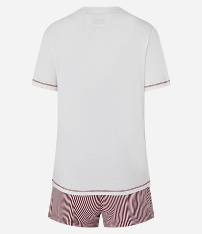 Ref: Conjunto de pijama confeccionado em viscose mais sustentável. São duas peças: blusa manga curta com estampa da Moranguinho e suas amigas "Berry Friends"; e short com cintura elástica, amarração e estampa listrada.