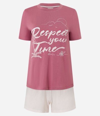 Ref: Conjunto de pijama curto confeccionado em viscose. São duas peças: camiseta manga curta com estampa lettering; e short com cintura elástica.
