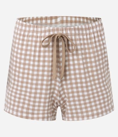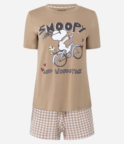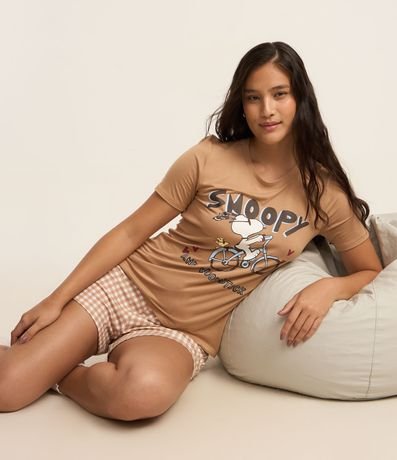 Ref: Conjunto de pijama curto confeccionado em viscose. São duas peças: camiseta com mangas curtas e estampa Snoopy; e short zadrez vichy com cintura elástica e amarração.