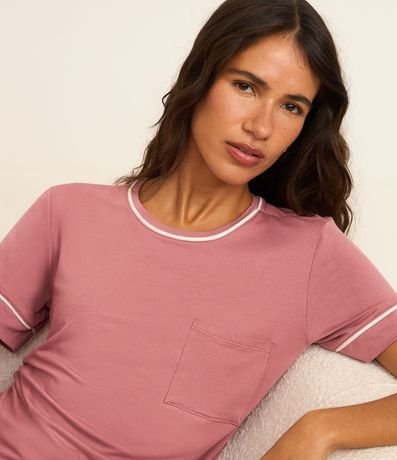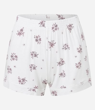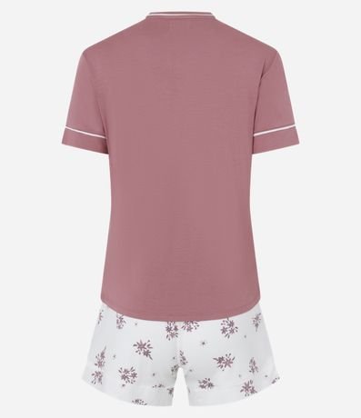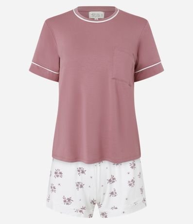 Ref: Conjunto de pijama short doll confeccionado em malha de viscose certificada. São duas peças: blusa manga curta com detalhes contrastantes; e short com cintura elástica e estampa de mini flores.