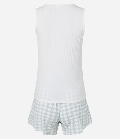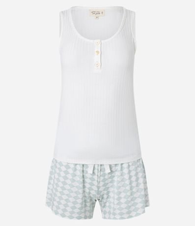 Ref: Pijama short doll confeccionado em viscose com blusa regata canelada e short com elástico no cós e amarração além de estamppa xadrez.