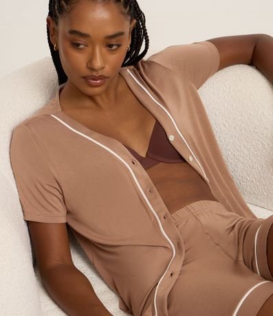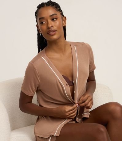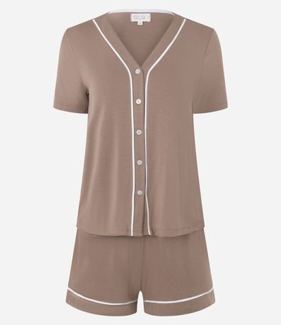 Ref: Conjunto de pijama curto de viscose composto por duas peças: blusa manga curta com botões e short com cintura elástica.