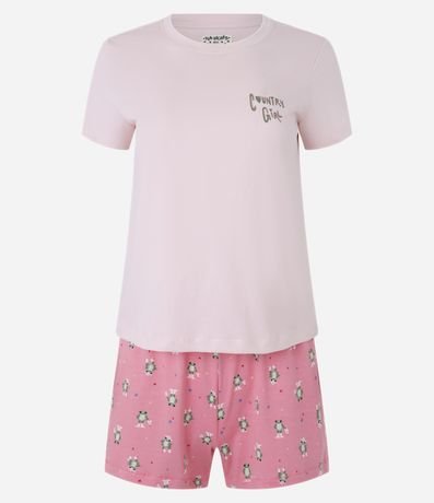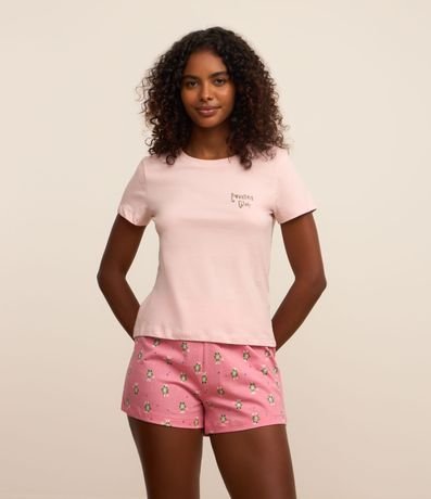 Ref: Pijama short doll feminino confeccionado em algodão. Blusa com gola redonda e short com cós elástico.