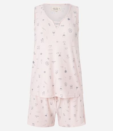 Ref: Pijama feminino com regata de alças largas e short com elástico no cós.