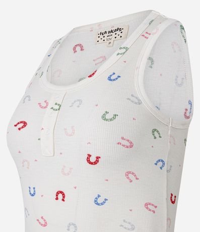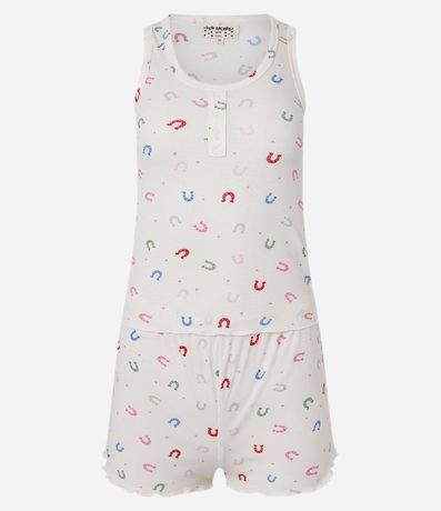 Ref: Pijama short doll feminino, confeccionado em tricô leve, com alcinhas reguláveis, cós elástico e estampa ferraduras.