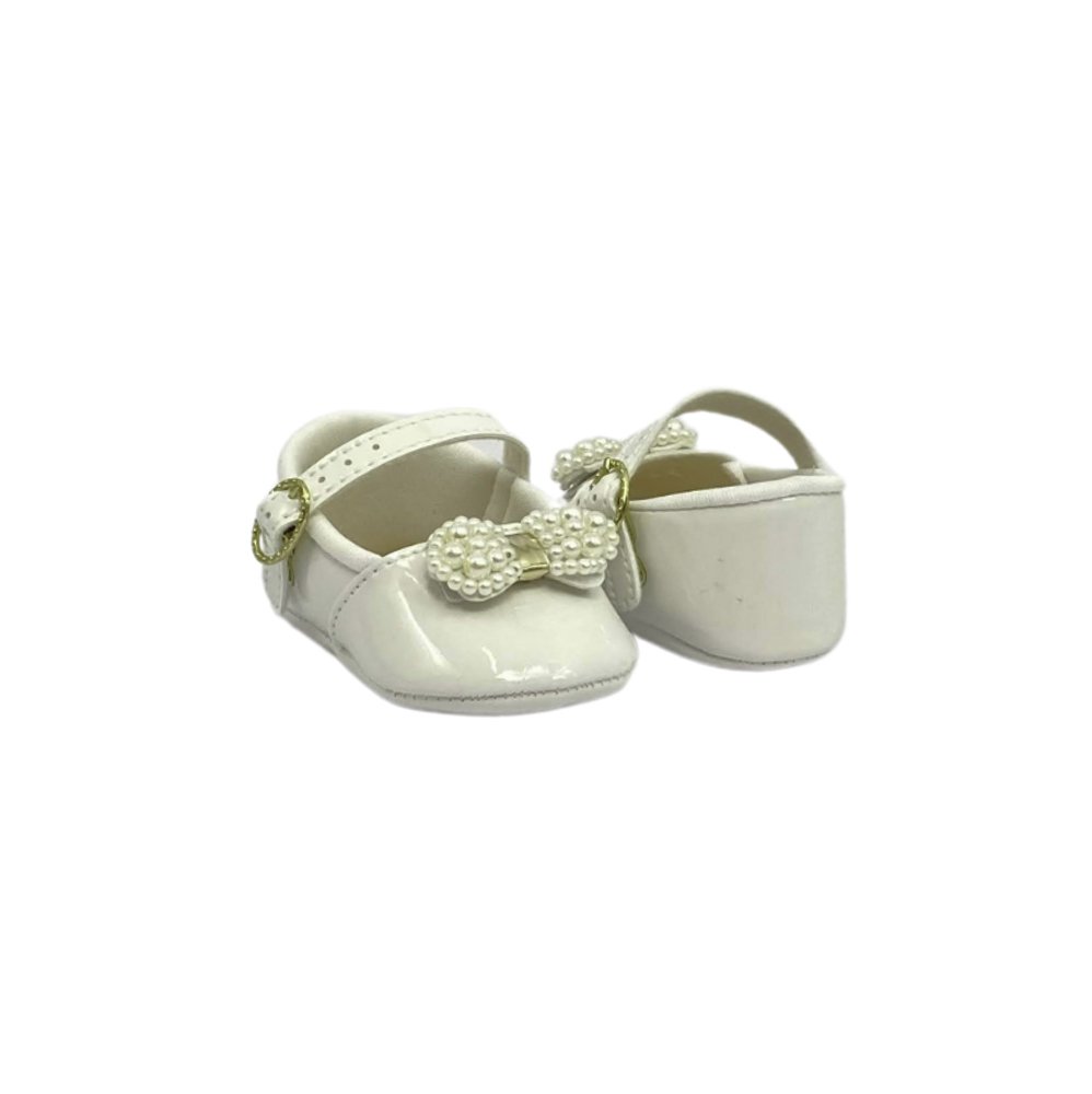 Ref: Conforto e segurança na sapatilha Baby Pimpolho, confeccionada em materiais alternativos de alta qualidade. Detalhe em 3D em formato de laço com pérolas. Possui fechamento em fivela para melhor ajuste e segurança aos pés.