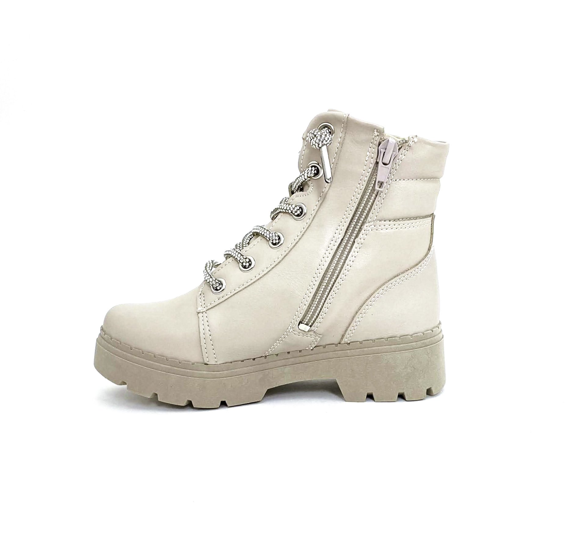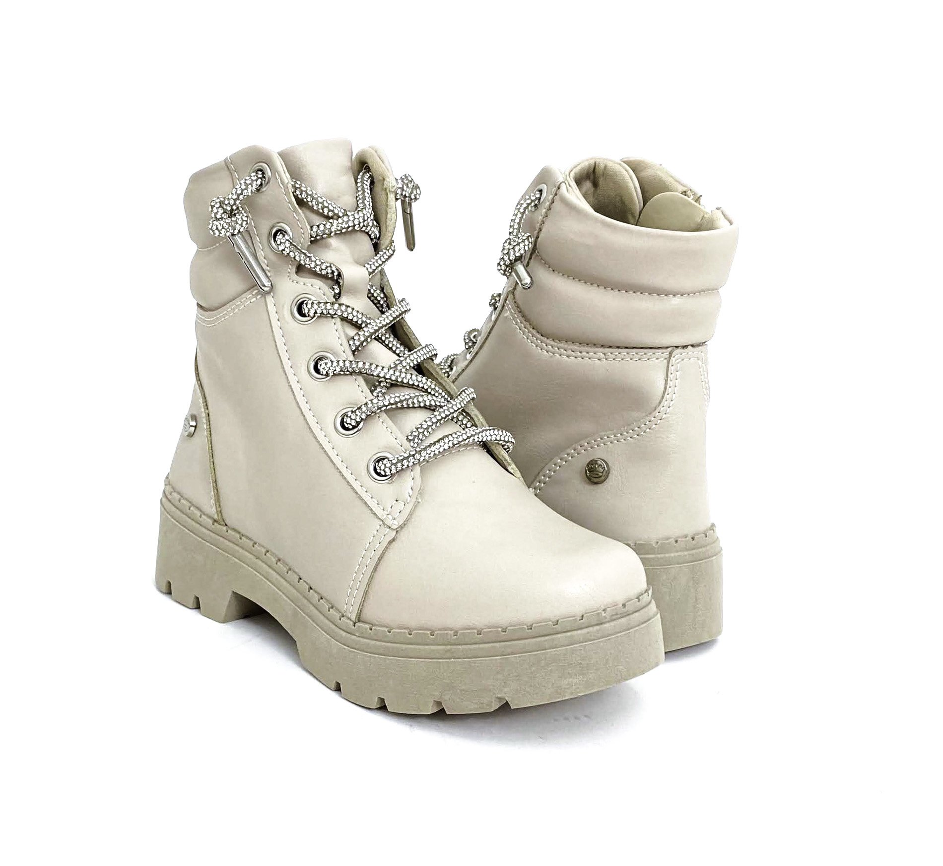 Coturno Pink Cats, modelo minimalista, com sola tratorada e robusta, cadarço de amarrar e passadores metalizados, confeccionada em material sintético macio e resistente, a bota coturno Pink Cats garante conforto e durabilidade.