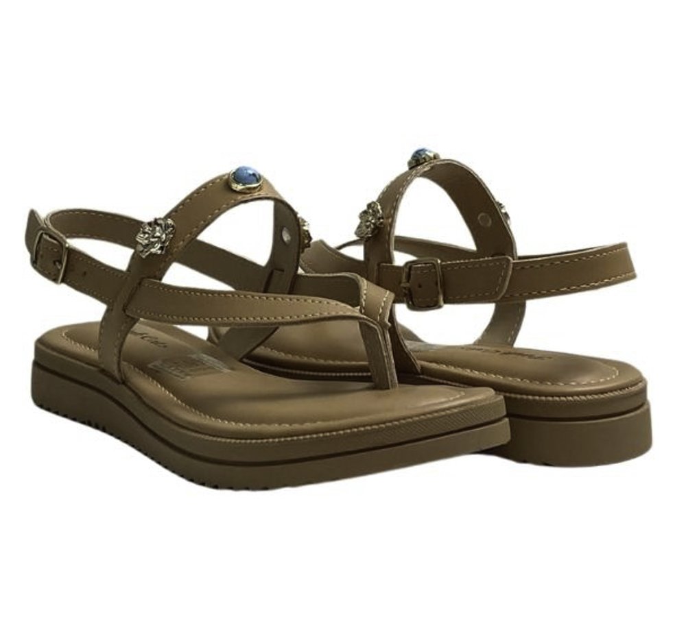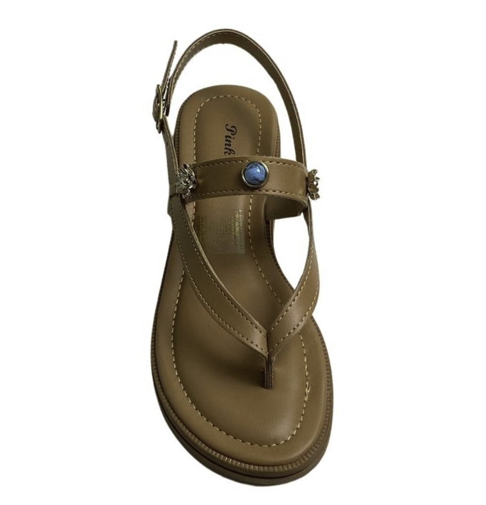 Sandália Infantil Pink Cats com detalhe de pedra azul na tira frontal e aplicações florais, fecho lateral com fivela ajustável e solado antiderrapante, garantindo conforto e segurança em cada passo.
