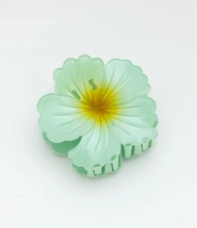 Ref: Piranha de cabelo em formato de flor hibisco, feita em plástico leve e resistente, perfeita para compor penteados com charme tropical.
