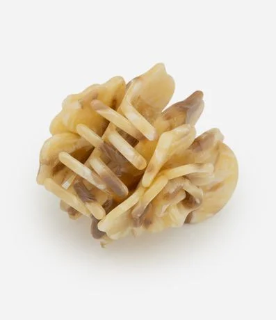 Ref: Acessório de cabelo de modelo piranha, confeccionada em plástico, com formato de flor e pintura mesclada com efeito mancha.