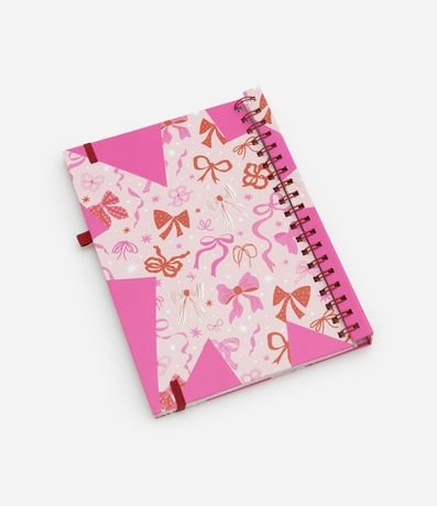 Ref: Planner com capa dura, elástico, espiral, estampa de lacinho com cereja, adesivos e folhas pautadas. Agenda não datada.