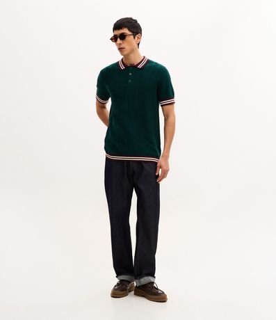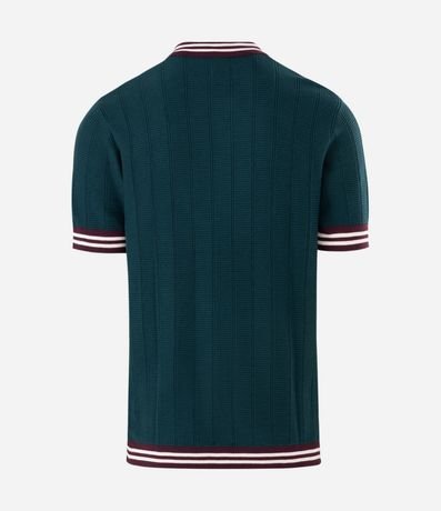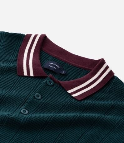 Ref: Polo manga curta em tricô texturizado com trama e gola contrastante, trazendo estilo e personalidade ao visual. Possui abertura com botões e caimento confortável. Peça moderna para o dia a dia, confeccionada em algodão de certificado BCI para maior sustentabilidade.