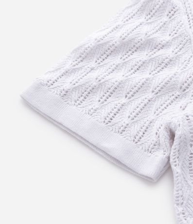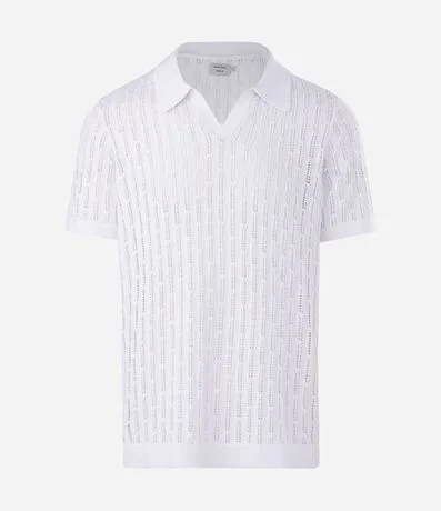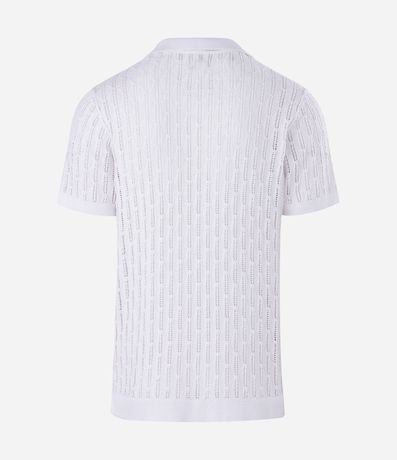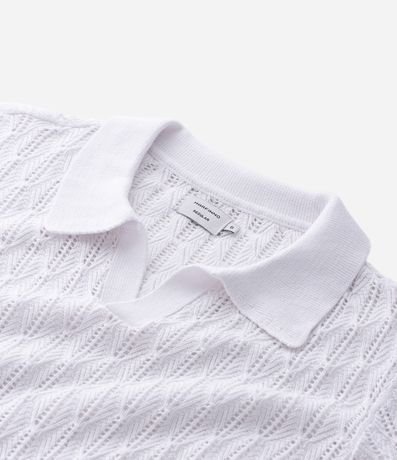 Ref: Polo manga curta em tricô com textura de losango aberto, trazendo leveza e sofisticação ao visual. Possui gola V, caimento confortável e toque macio. Ideal para compor produções casuais elegantes, confeccionado em algodão de certificado BCI para maior sustentabilidade.
