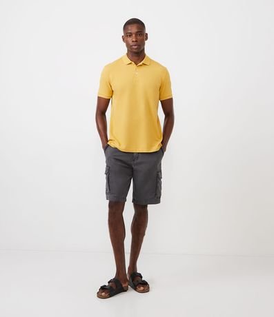 Ref: Polo masculina, modelo regular, confeccionada em tecido malha piquet, com botões na gola e mangas curtas.