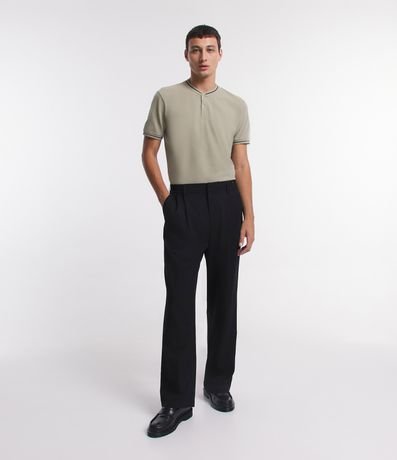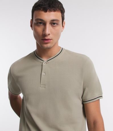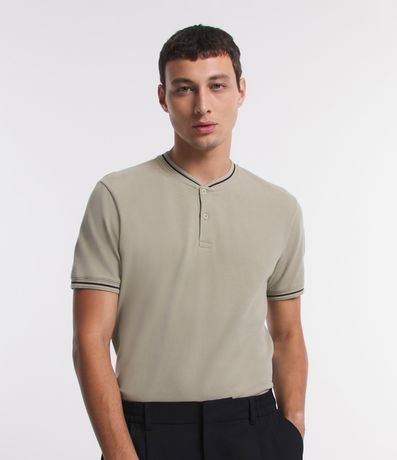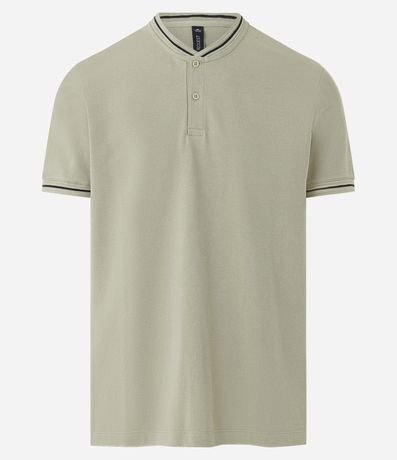 Ref: A polo slim masculina, é confeccionada em meia malha, tecido leve e super respirável. A peça possui gola v com abotoamento frontal, mangas curtas e frisos contrastantes.