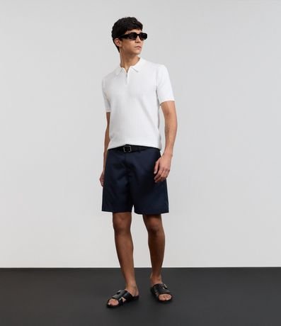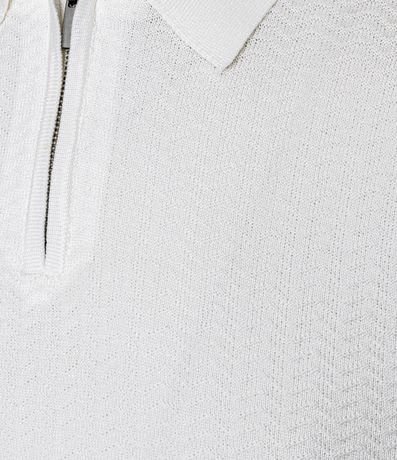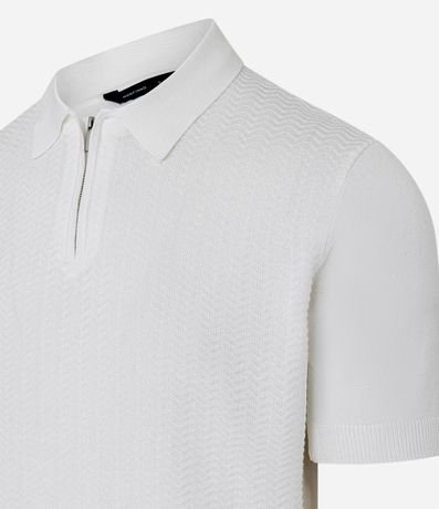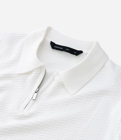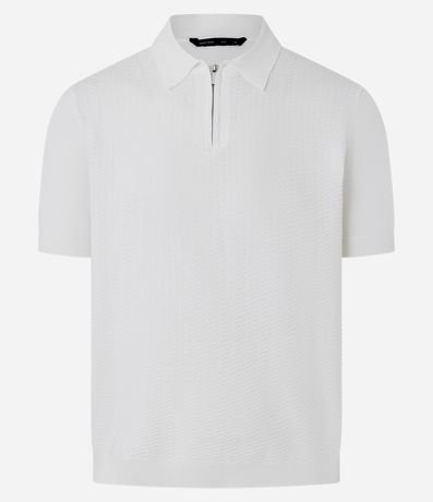 Camiseta masculina polo slim confeccionada em viscose certificada e processo mais sustentável. Modelo com gola polo, zíper, manga curta e superfície texturizada. Versátil, leve e respirável para looks casuais e formais.