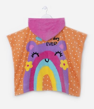 Poncho Infantil Atoalhado com Capuz e Estampa de Arco-Íris - Tam U