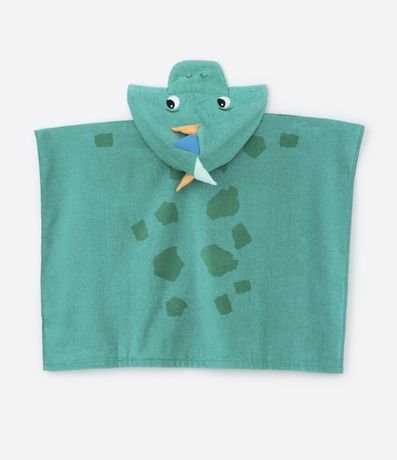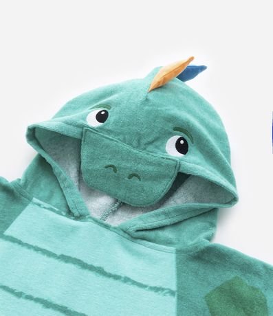 Ref: Poncho infantil confeccionado em algodão de acabamento atoalhado, com capuz e estampa de dinossauro com crista interativa.