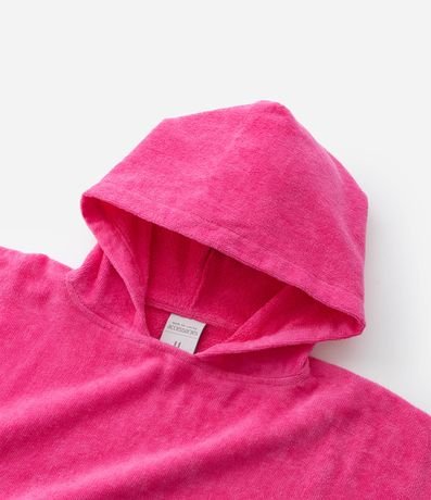 Ref: Poncho infantil confeccionado em algodão, de modelo atoalhado, com capuz e detalhe lateral de mini tasseis aplicados.