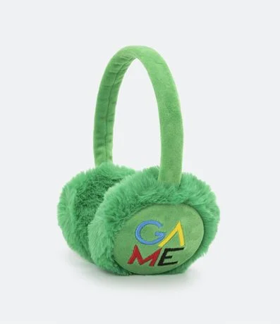 Ref: Protetor de orelhas, infantil, em poliéster, peludinho e com estampa em lettering Game.