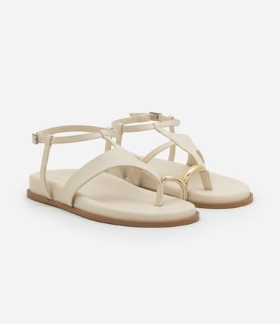 Rasteira com Tiras Assimétricas e Dedeira com Detalhe de Metal