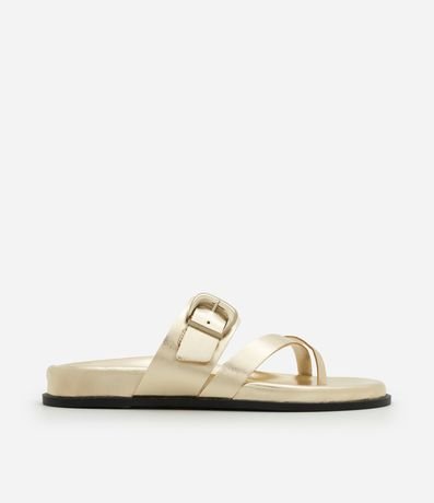Rasteira em Material Sintético com Dedeira e Detalhe de Maxi Fivela