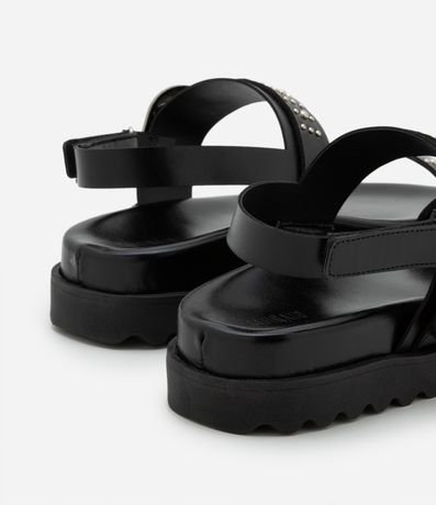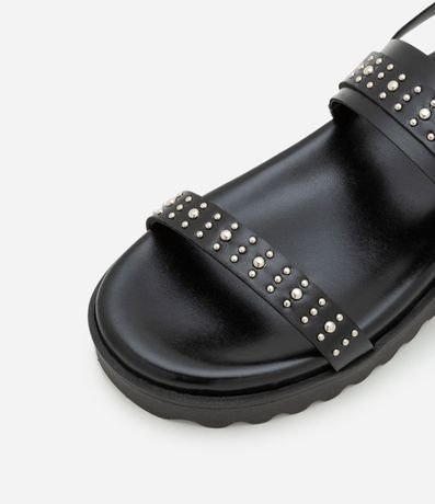 Ref: Rasteira feminina, confeccionada em PU, com fivela western, aplicação de tachinhas e solado médio.