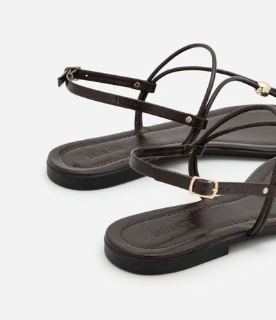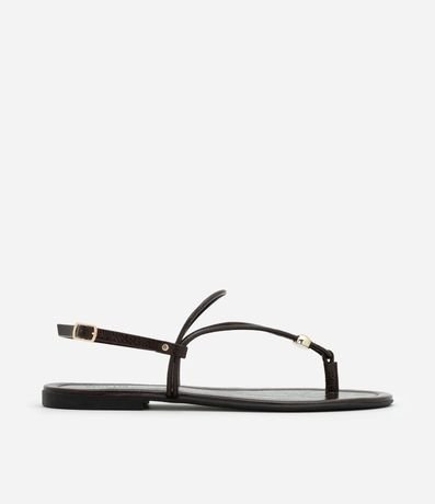 Rasteira em PU com Tiras Finas e Detalhe em Metal
