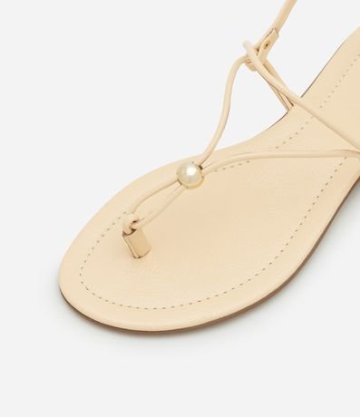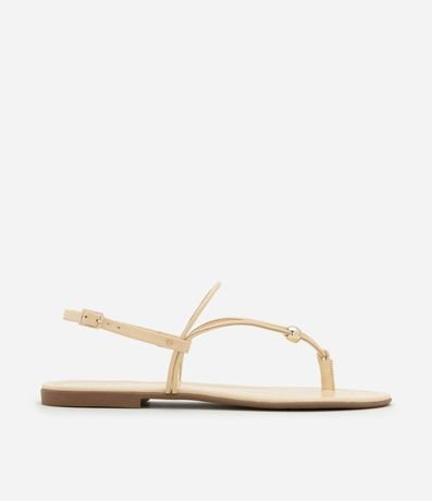 Rasteira feminina, confeccionada em PU, com tiras bem finas e delicadas. A peça possui detalhe de bolinha e fechamento em fivela.