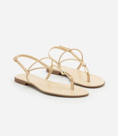 Rasteira em PU com Tiras Finas e Detalhe em Metal
