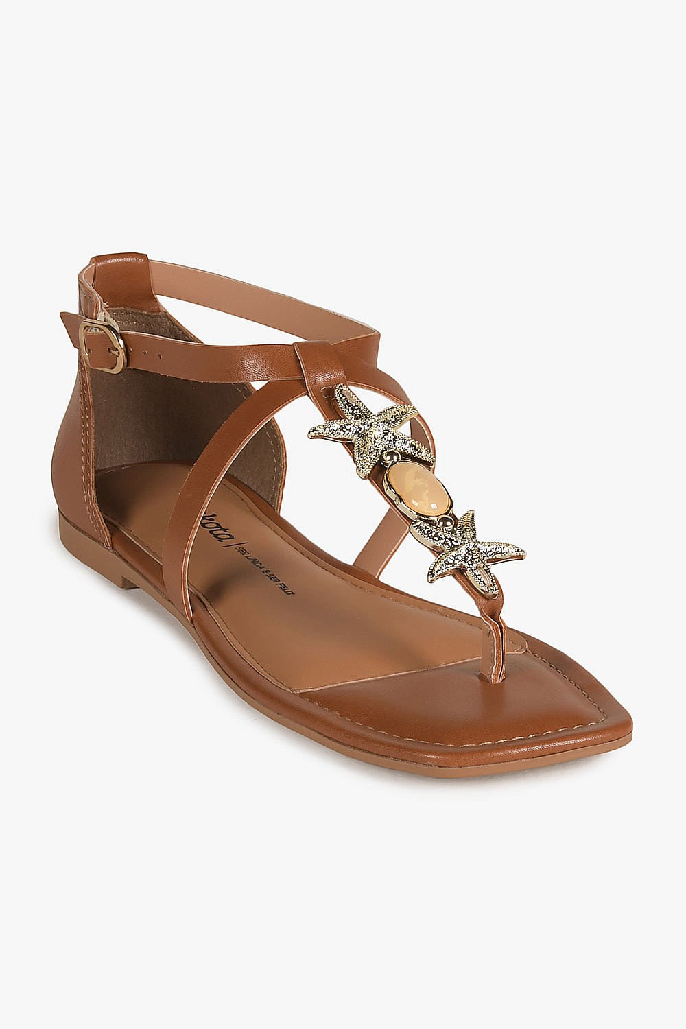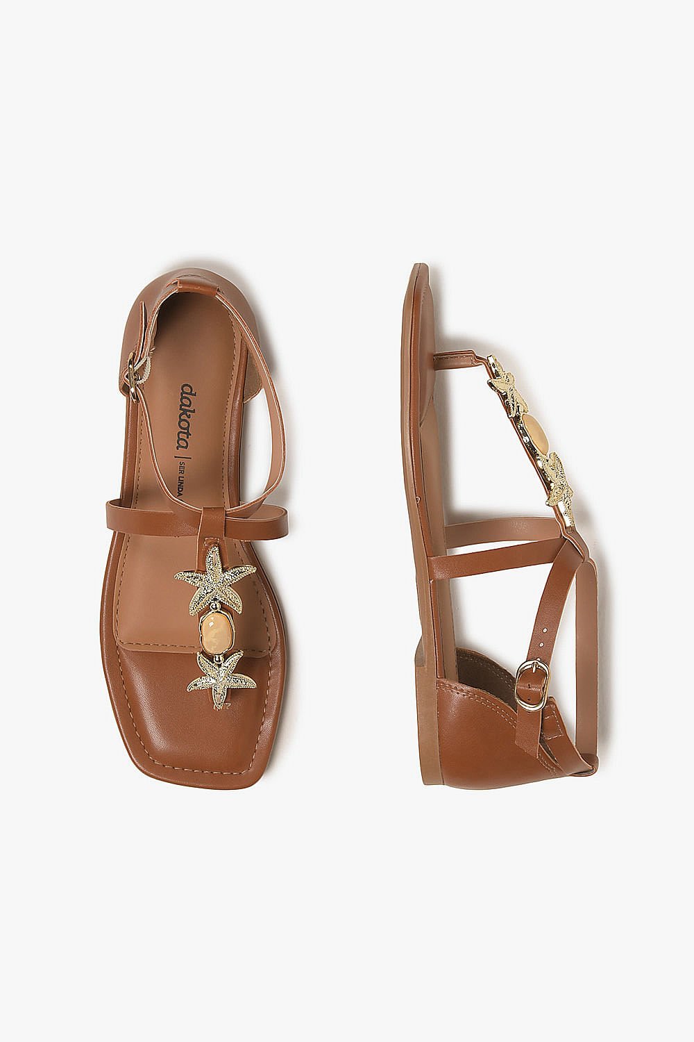 A Rasteira Feminina Dakota Sonja tem um design delicado e toque sofisticado. Possui tiras finas, fechamento ajustável por fivela lateral e aplicação de estrelas-do-mar com brilho e detalhe central que traz um charme especial ao modelo. Com palmilha macia e solado antiderrapante, garante conforto e segurança ao caminhar. Ideal para compor looks leves e elegantes nos dias mais quentes.