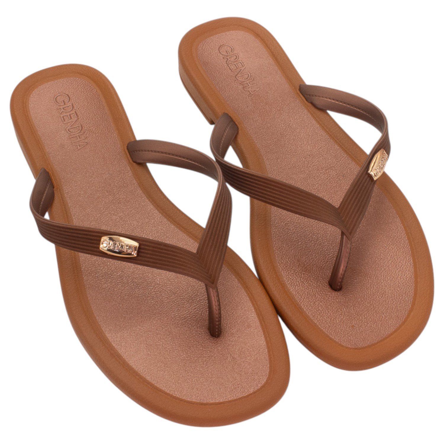 Ref: A Rasteira Todo Dia Sutileza Grendha traz uma interpretação atemporal com sua textura longilínea, que adiciona elegância ao design e valoriza a silhueta dos pés. O modelo é enriquecido por dois enfeites metálicos que elevam sua sofisticação: um com o logo da marca e outro inspirado nas mini fivelas, tendência marcante da estação, resultando em uma rasteira delicada, atual e perfeita para compor looks casuais com charme e leveza.