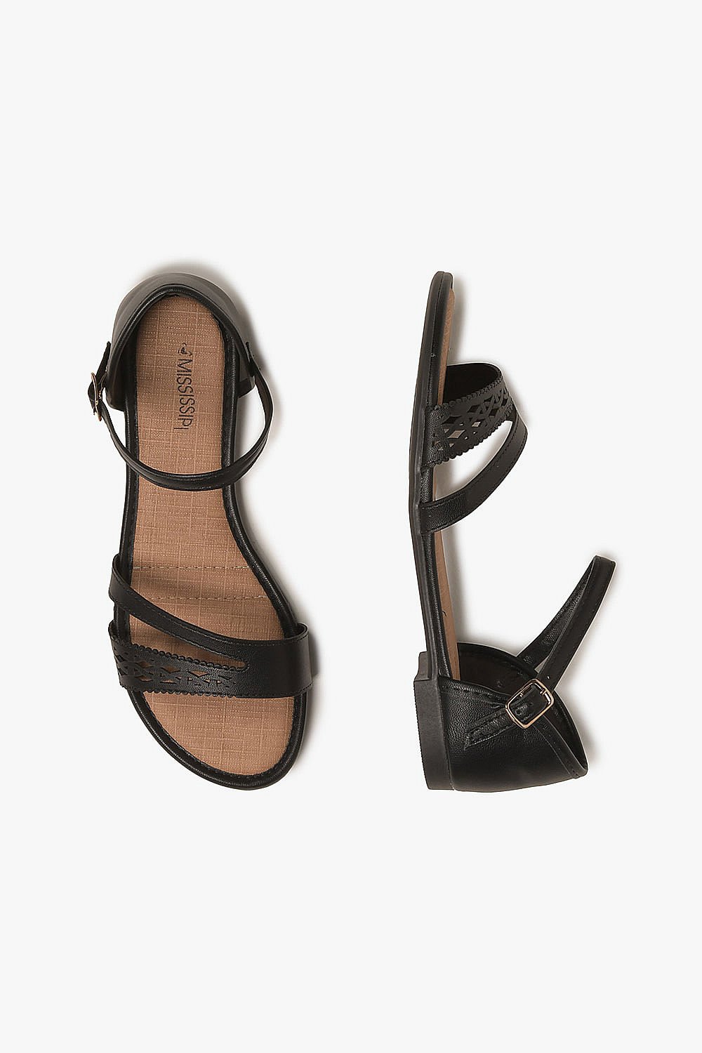 A Rasteira Feminina Mississipi Fiona apresenta um design minimalista, com duas tiras frontais uma delas apresentando detalhe vazado decorativo e fechamento lateral por fivela ajustável. Possui calcanhar fechado e solado baixo e reto, oferecendo conforto e praticidade para o uso diário. O estilo é versátil e elegante, ideal para compor looks leves e casuais.