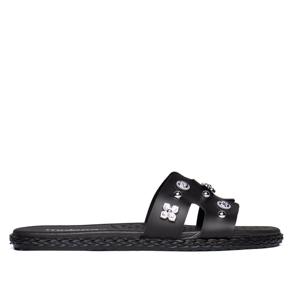Nome do produto: Rasteira Feminina Moleca com Recortes e Aplicações Preto