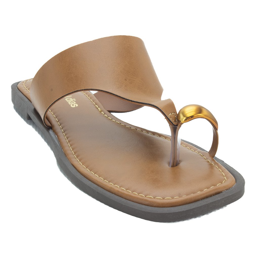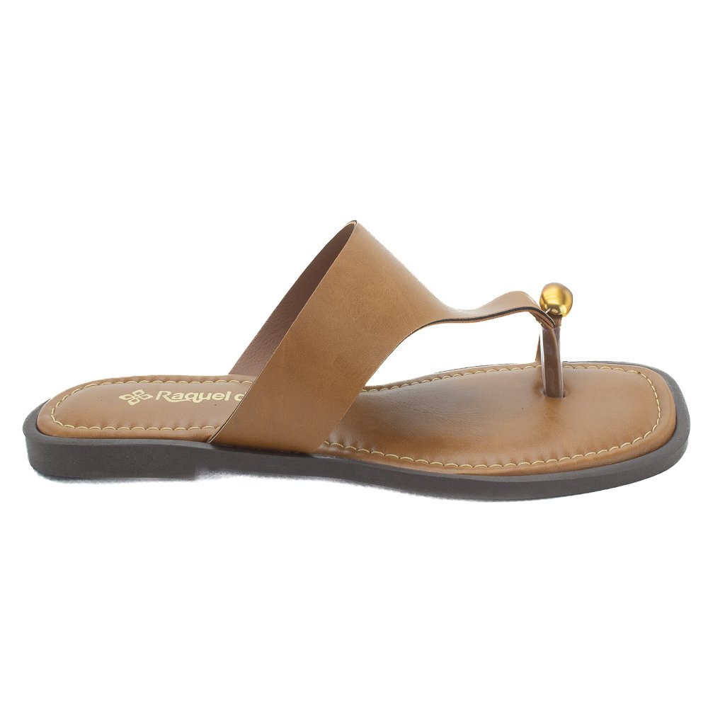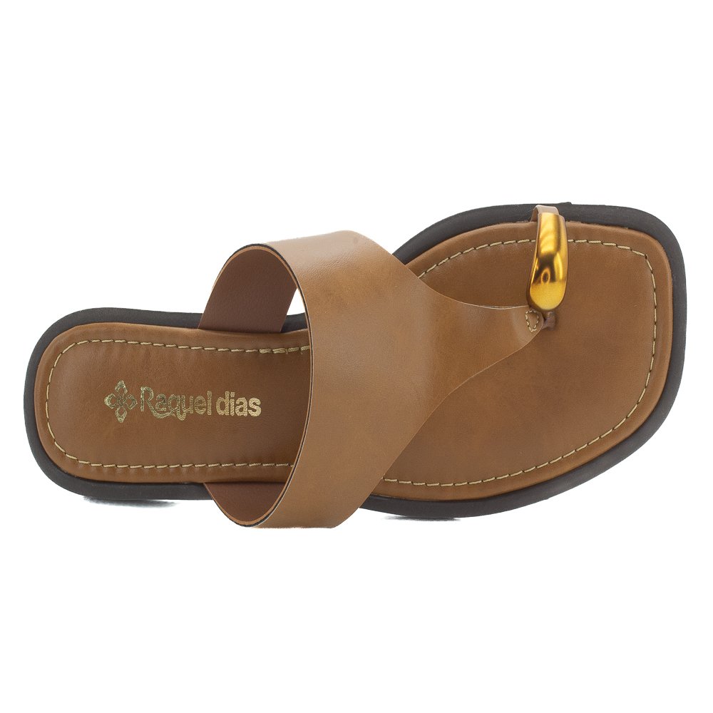 Ref: A Rasteira Raquel Dias é a peça chave para quem busca praticidade e estilo no dia a dia. Este modelo flat, na cor marrom (ou âmbar), é confeccionado em material sintético e apresenta um design moderno com bico sutilmente quadrado. Seu cabedal é composto por uma tira larga que envolve o peito do pé de forma confortável e segura. O grande diferencial fica por conta do detalhe metálico na cor dourada, que funciona como um separador de dedos, garantindo o calce fácil e adicionando um toque sofisticado e contemporâneo. Com solado escuro e palmilha com costura pespontada, esta rasteira é versátil e atemporal, combinando com produções leves de verão e também com looks mais arrumadinhos, sendo a opção perfeita para um visual charmoso sem abrir mão do conforto.