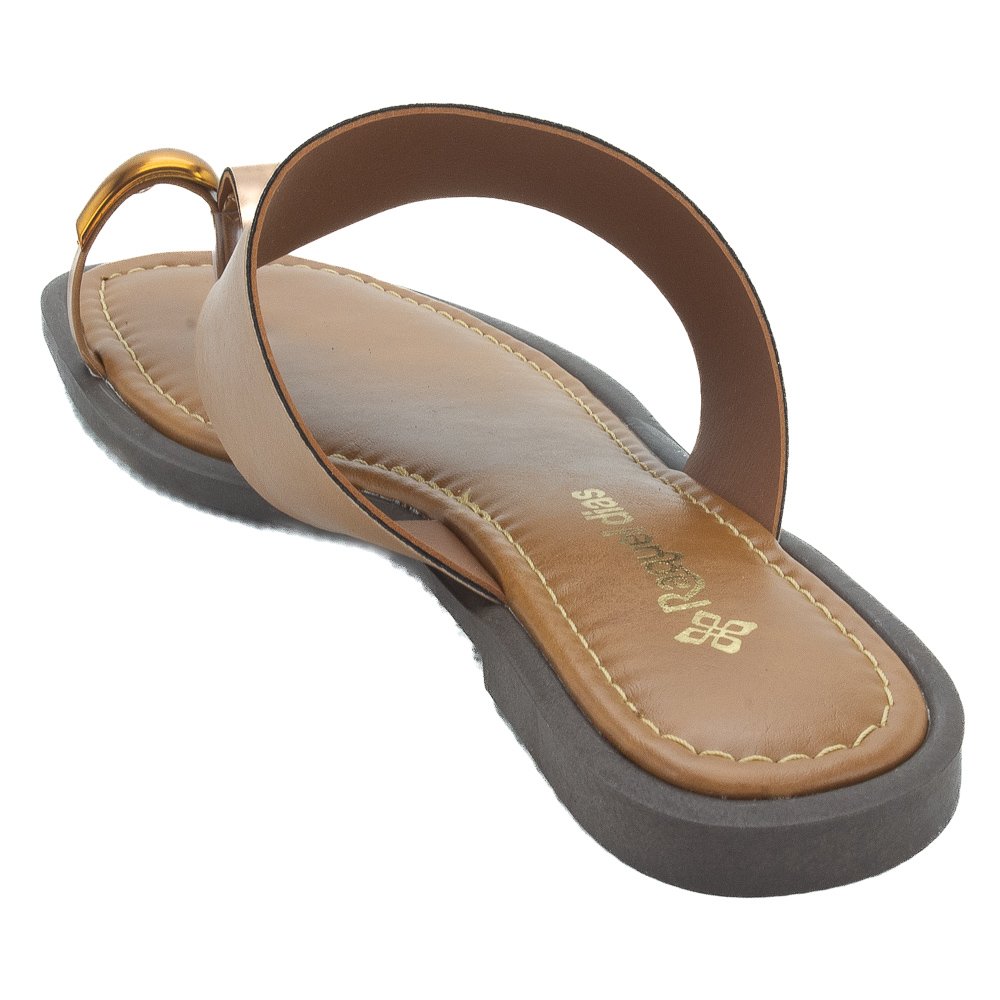 Ref: A Rasteira Raquel Dias é a peça chave para quem busca praticidade e estilo no dia a dia. Este modelo flat, na cor marrom (ou âmbar), é confeccionado em material sintético e apresenta um design moderno com bico sutilmente quadrado. Seu cabedal é composto por uma tira larga que envolve o peito do pé de forma confortável e segura. O grande diferencial fica por conta do detalhe metálico na cor dourada, que funciona como um separador de dedos, garantindo o calce fácil e adicionando um toque sofisticado e contemporâneo. Com solado escuro e palmilha com costura pespontada, esta rasteira é versátil e atemporal, combinando com produções leves de verão e também com looks mais arrumadinhos, sendo a opção perfeita para um visual charmoso sem abrir mão do conforto.