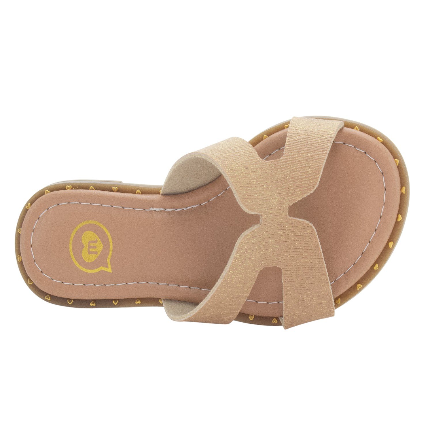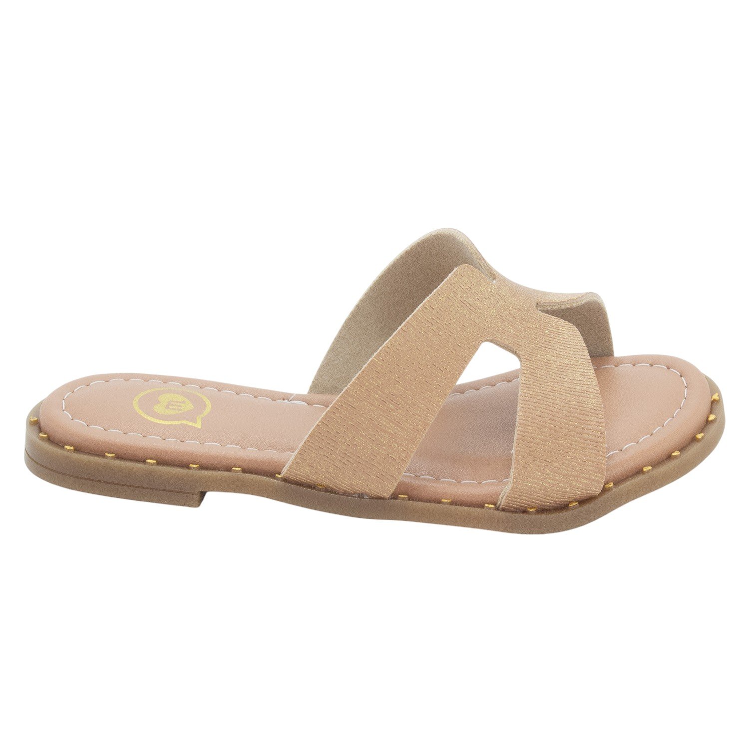 A Rasteirinha Infantil Molekinha 2342.105 é a escolha ideal para as pequenas que amam unir conforto e um charme sutil em um único calçado. Este modelo slide apresenta um design elegante de tira única larga no cabedal, com um recorte que lembra um 'H' vazado, e conta com acabamento em napa brilho, conferindo um visual moderno e delicado. Seu tom Nude possui um leve toque dourado/gliterizado sutil, adicionando elegância e versatilidade. O conforto é garantido pela palmilha macia e pelo solado em PVC, que é flexível e antiderrapante, garantindo leveza e bem-estar durante todo o dia. Para um toque de charme extra, o contorno do solado é adornado com pequenos detalhes que se assemelham a tachas ou corações em relevo. Prática e fácil de calçar, a rasteirinha proporciona autonomia às meninas e acompanha com charme os passeios, momentos de lazer e dias ensolarados, combinando estilo, conforto e um toque de sofisticação em cada passo.