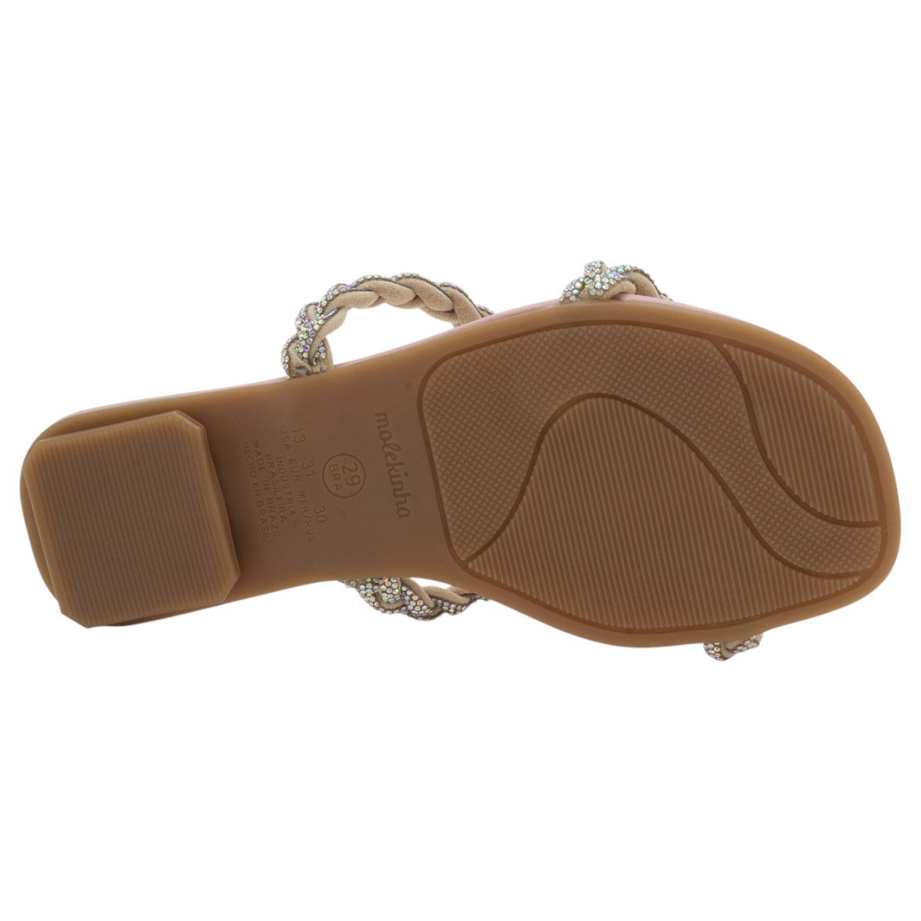 Ref: A rasteira infantil Molekinha 2354.108 na cor rosa é a escolha perfeita para unir conforto e elegância no visual das meninas. O modelo se destaca por suas duas tiras horizontais com design trançado, inteiramente revestidas por strass que garantem um brilho sofisticado e encantador. Sua palmilha macia em tom de rosa proporciona bem-estar durante o uso, enquanto o solado antiderrapante, com um discreto saltinho, oferece segurança e estabilidade a cada passo. É um calçado versátil e delicado, ideal para completar looks de festas ou dar um toque de estilo especial às produções do dia a dia.