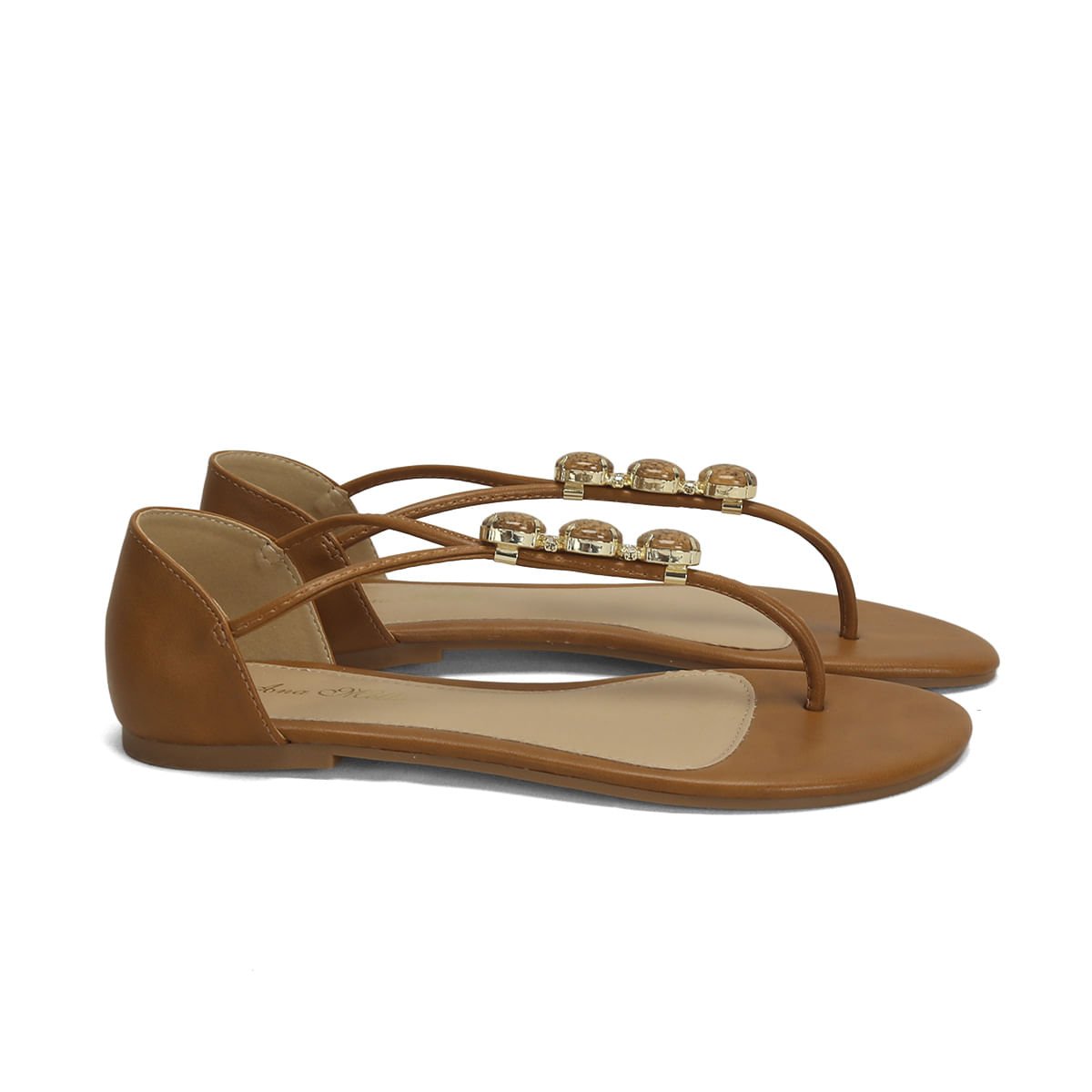 Rasteira Pedras Marmorizadas Caramelo Fecho Calce FácilPuro conforto e estilo! Rasteira em Caramelo com riqueza de detalhes: pedrarias marmorizadas que brilham e um fechamento calce fácil.