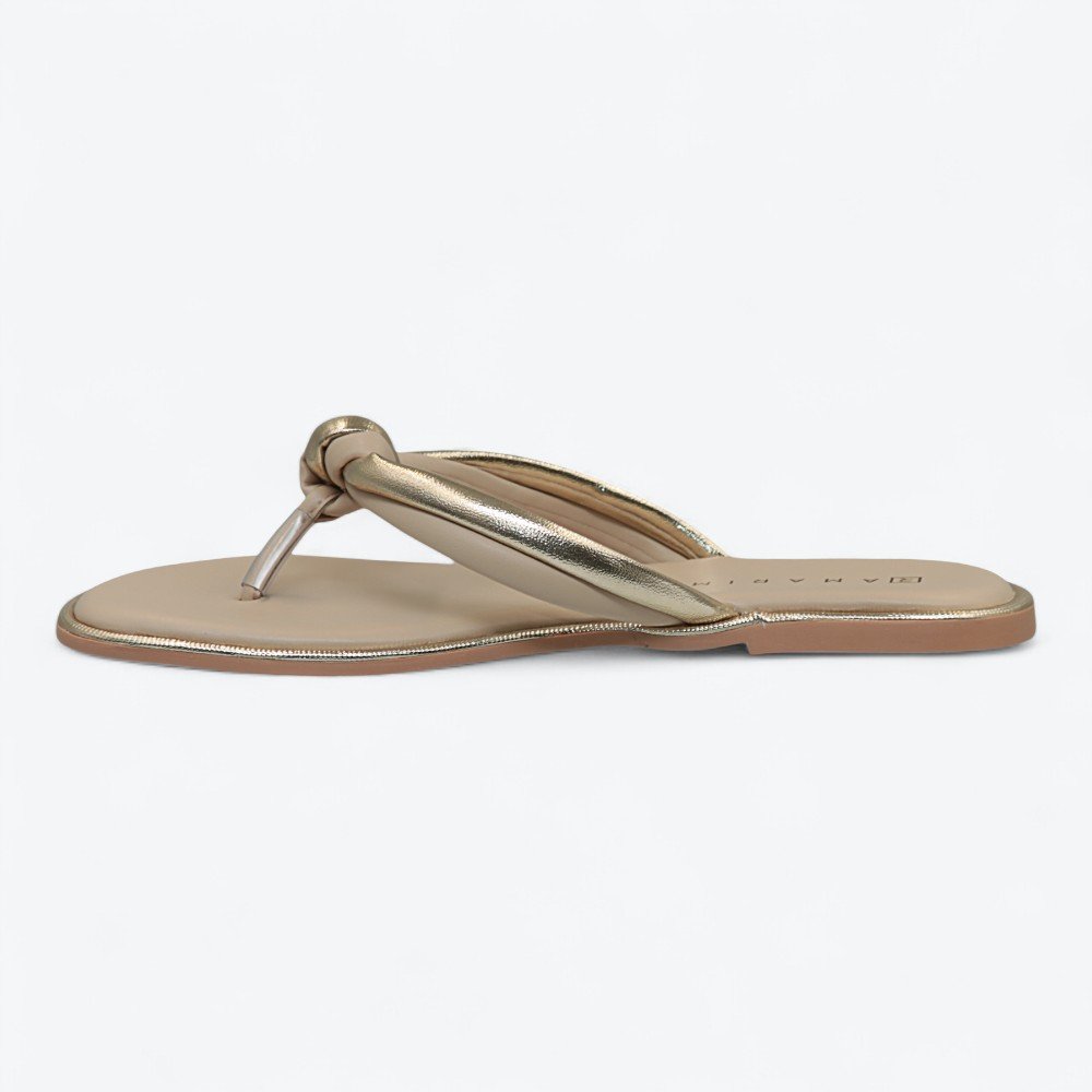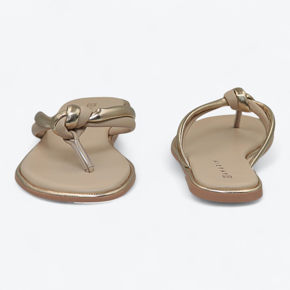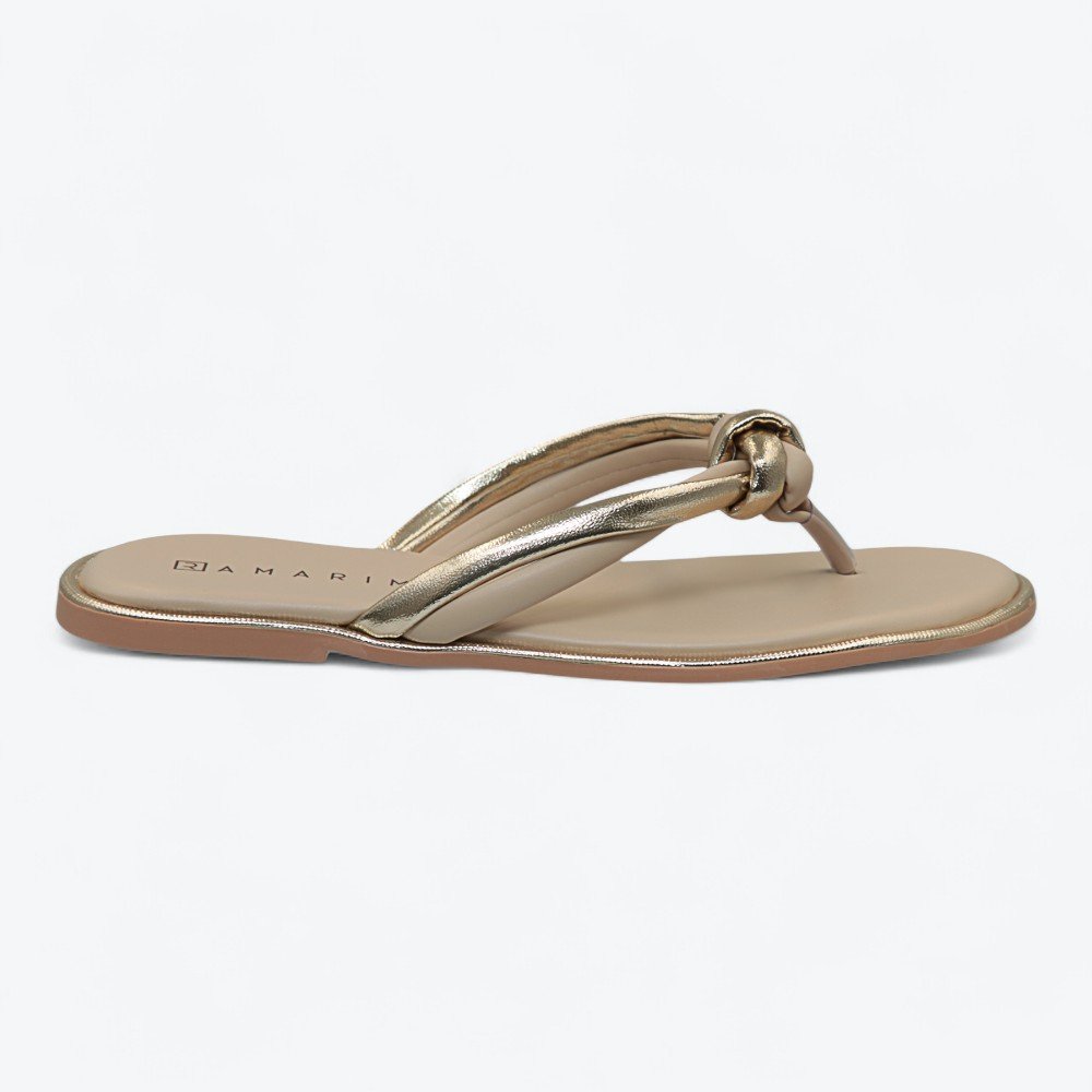 Ref: Leveza, conforto e elegância definem esta rasteira da Ramarim. O modelo possui design minimalista com tiras finas e um charmoso detalhe de nó no cabedal, trazendo um visual moderno e delicado.
