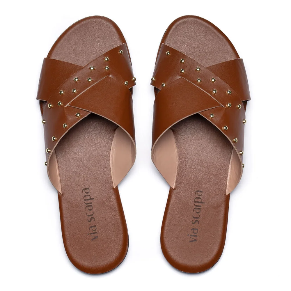 Rasteirinha Feminina Via Scarpa Tiras Cruzadas Marrom