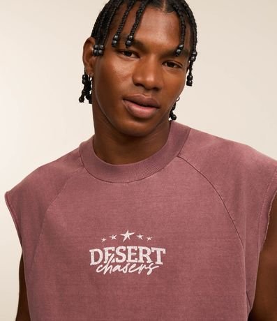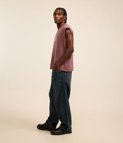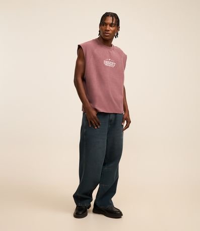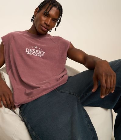 Ref: Regata masculina confeccionada em algodão mais sustentável com boas práticas ambientais, gola em ribana. Peça no modelo boxy com estampa lettering e barra a fio.