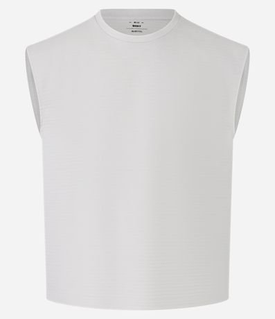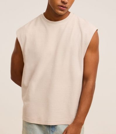 Regata masculina confeccionada em algodão mais sustentável, modelo boxy, possui gola redonda e texturizada.