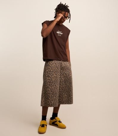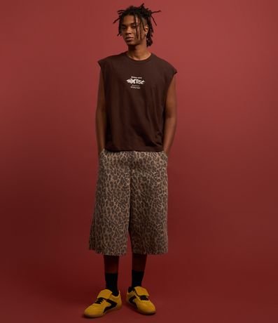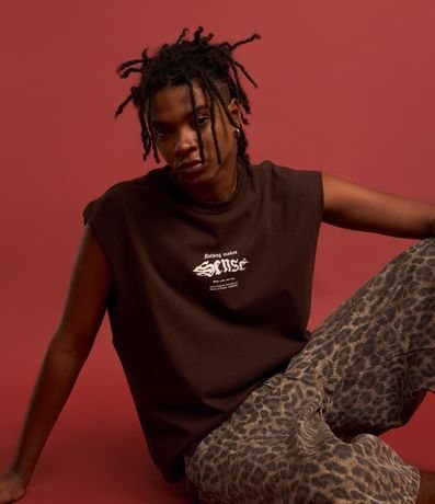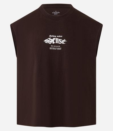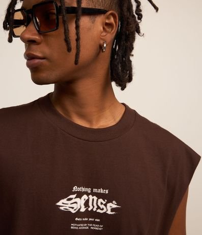 Regata masculina confeccionada em malhão, gola redonda. No modelo boxy peça contém estampa lettering localizada.